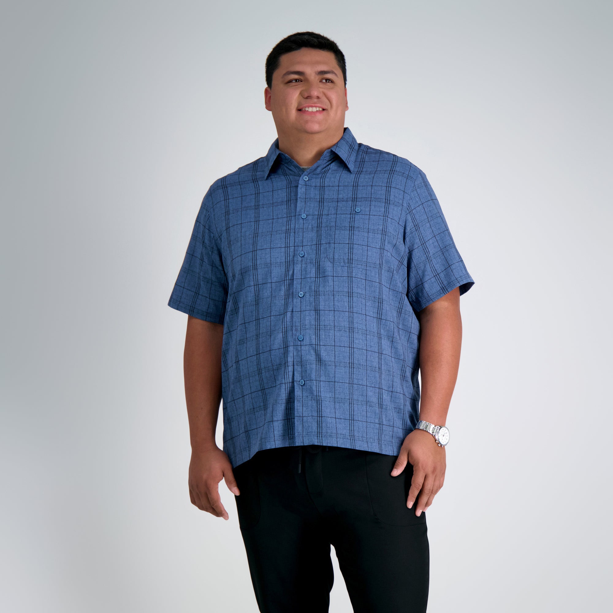 Be the first to review “Haggar Men’s Big & Tall Microfiber Plaid Shirt | London Blue” Cancel reply