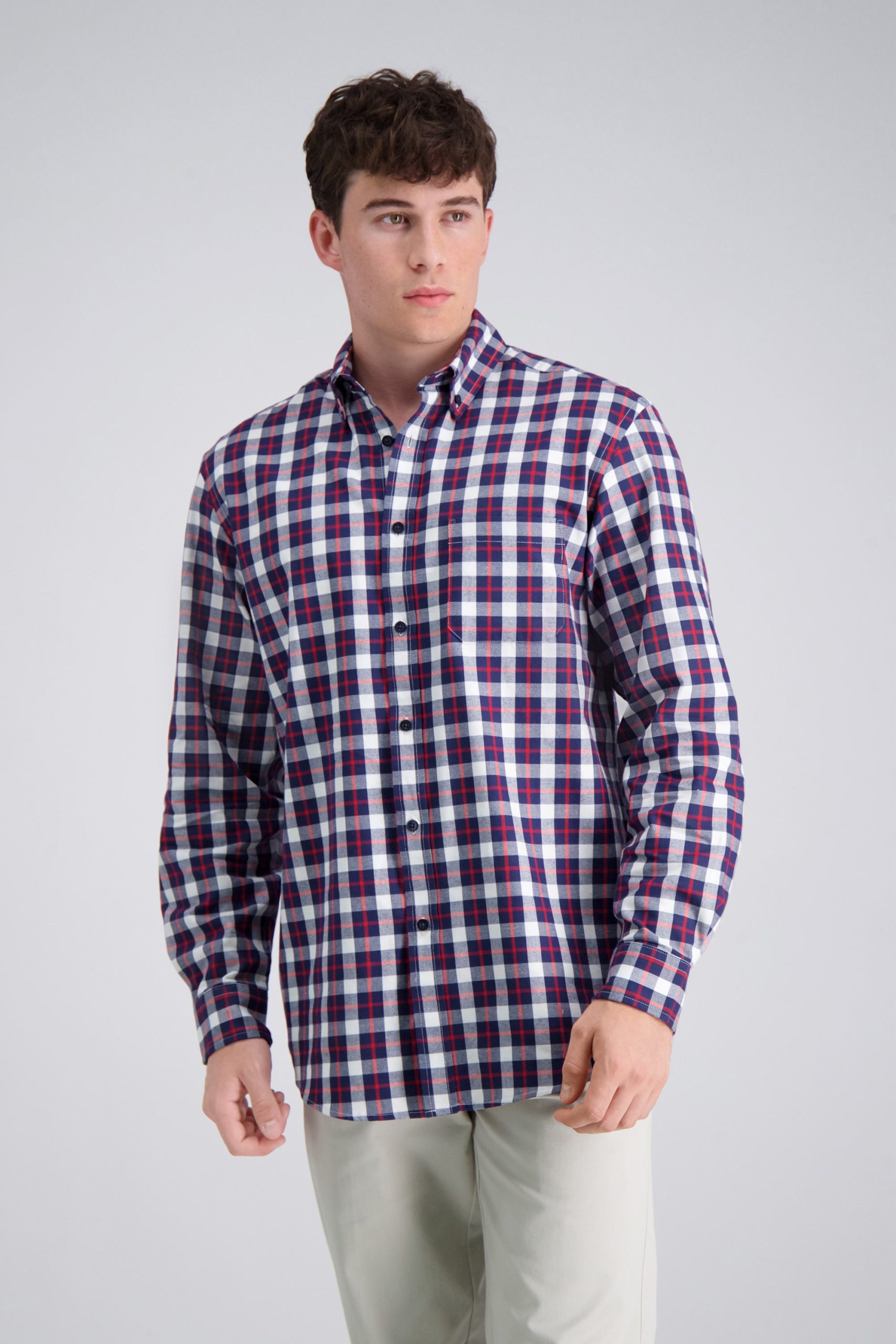 Be the first to review “Haggar Men’s Long Sleeve Brushed Cotton Plaid Shirt | Dark Navy” Cancel reply