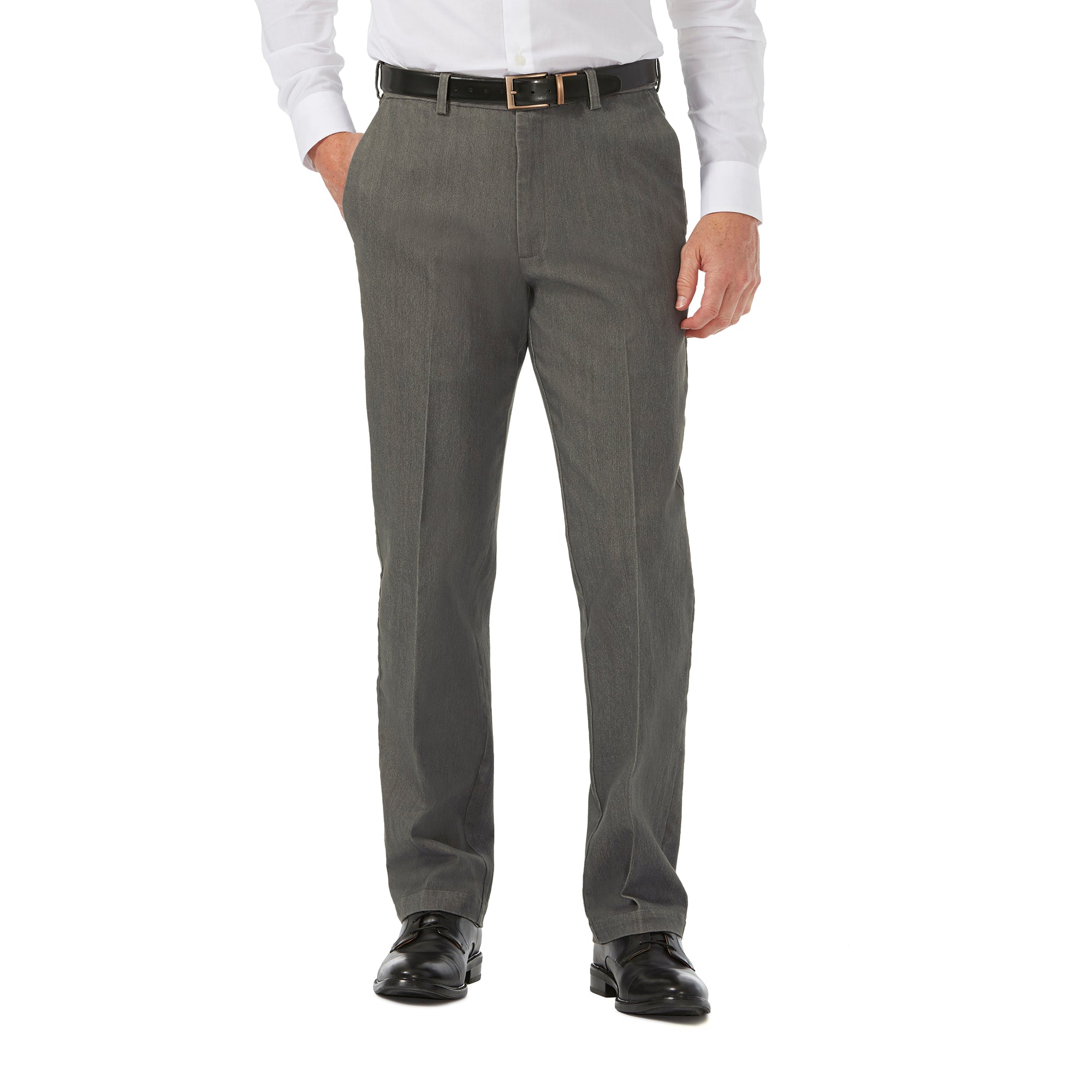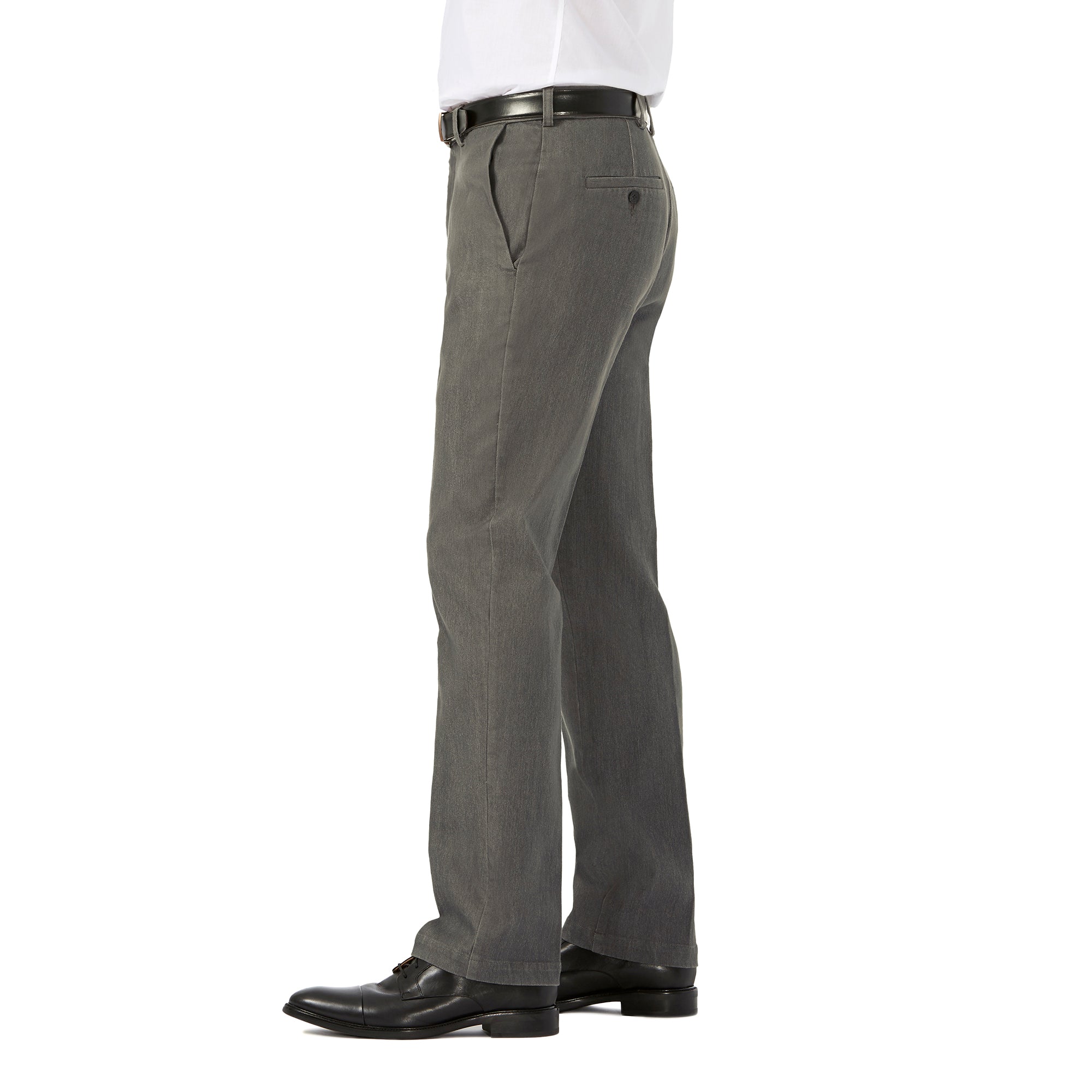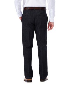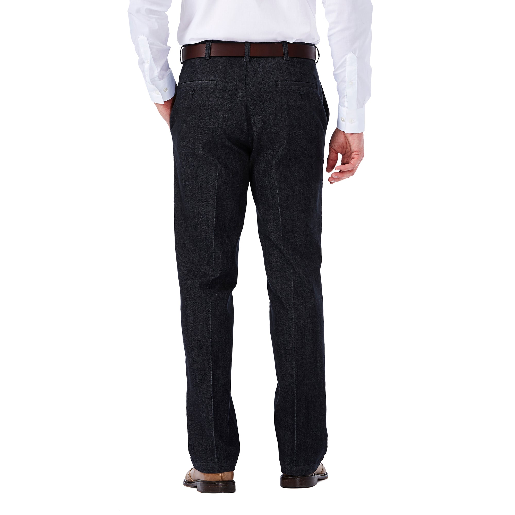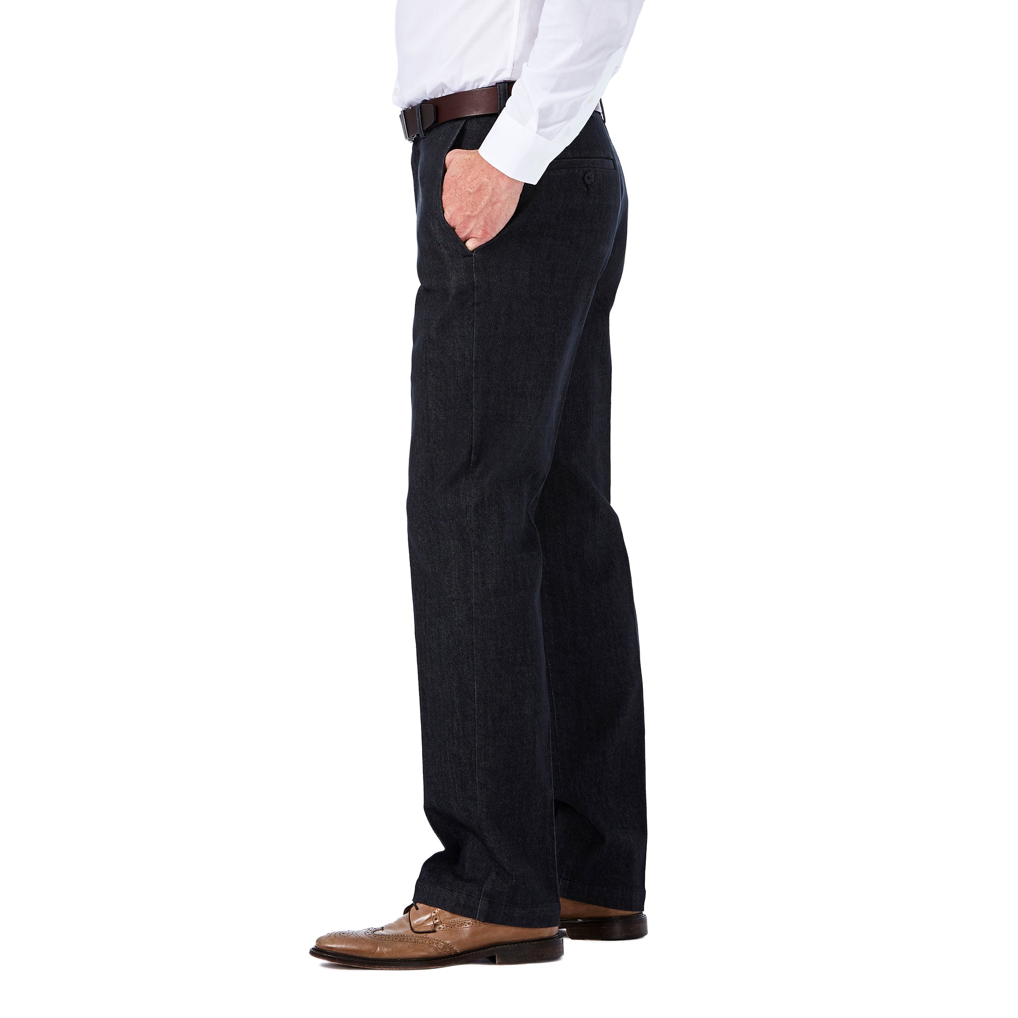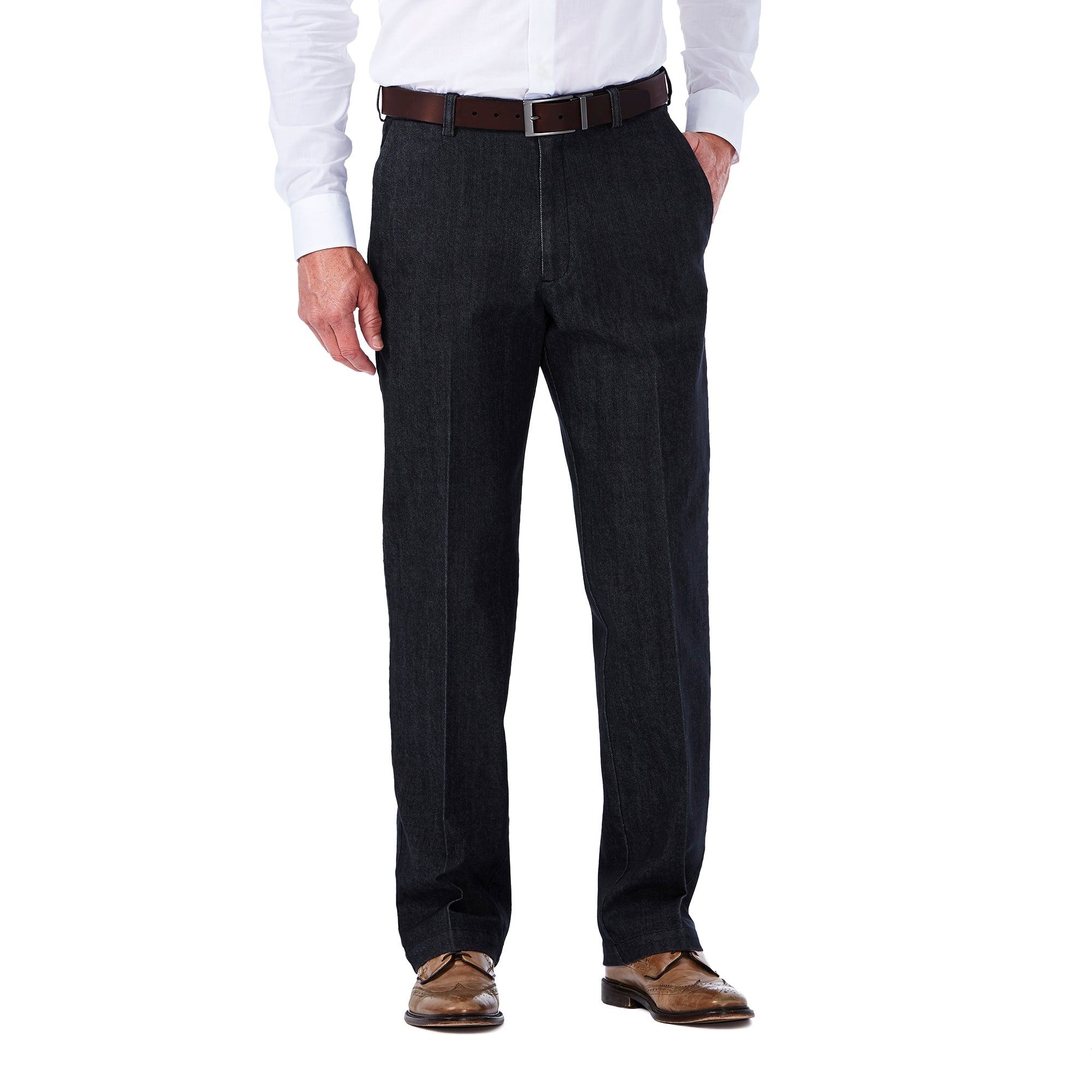 For those times when you need something in between casual and dressy, the trouser styling of Haggar stretch colored denim is the perfect choice. Made with lightweight stretch fabric for hard-to-beat comfort and a hidden expandable waistband, our grey, black and khaki options look smart with a stylish flat front and classic fit.